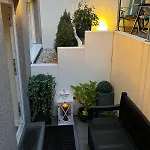 Los huéspedes pueden hacer uso de las instalaciones de autoservicio de la propiedad, incluida una cocina, y disfrutar de sus comidas en un comedor al aire libre. Este establecimiento se encuentra bastante cerca de la estación de autobuses Vogelsang. El apartamento se abre a una terraza.
